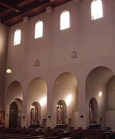 - THE ALTARS AT THE SIDE OF THE CHURCH IN HONOR OF SOME SAINTS © PHOT. https://de.wikipedia.org/wiki/Datei:Muensterschwarzach_Abteikirche_Innenraum.jpg