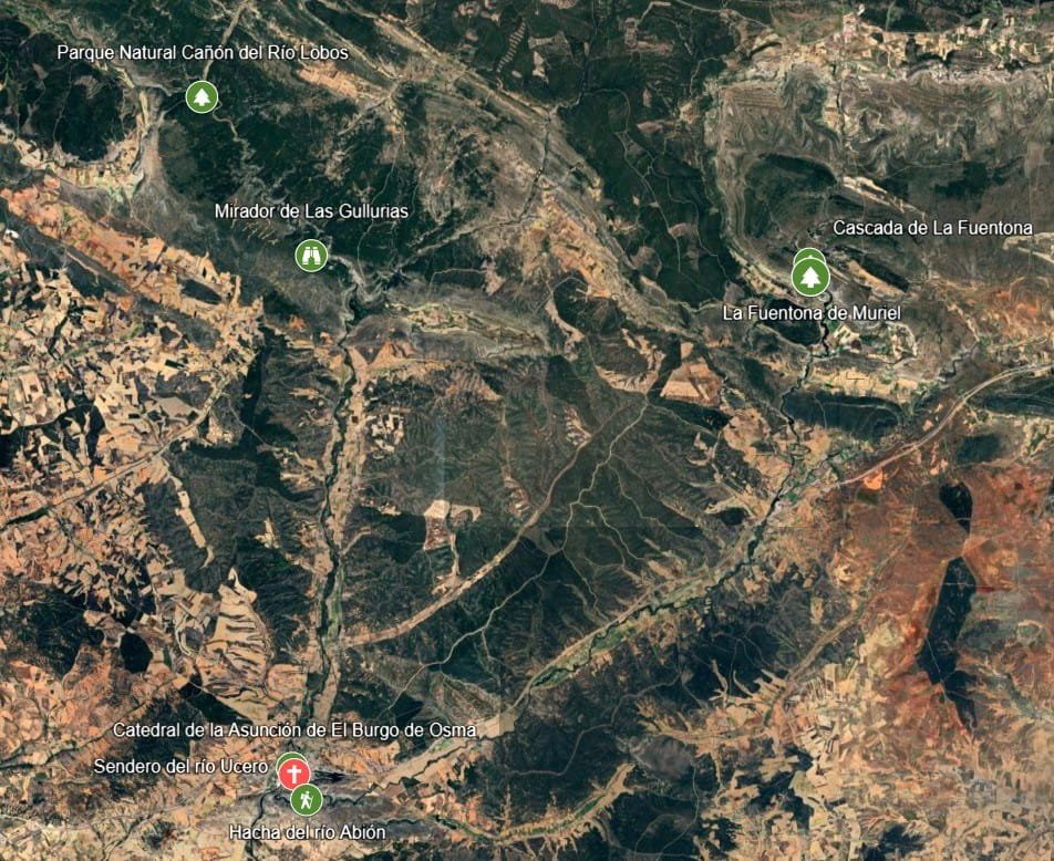 | Patrimonio natural | Sendero la Hoz del Río Abión Senda del Rio Ucero Mirador de Las Gullurias Parque Natural del Cañón del Río Lobos Monumento Natural de La Fuentona Reserva natural del Sabinar de Calatañazor Ruta “El Destierro” en Camino del Cid (Etapa 11) |