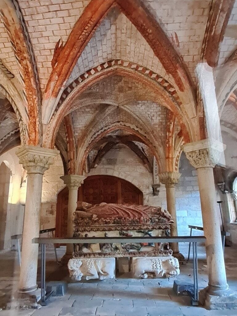 - SALA CAPITULAR. SEPULCRO DE SAN PEDRO DE OSMA Y DECORACIÓN PICTÓRICA DE LOS NERVIOS DE LA BÓVEDA Imagen obtenida de: https://elcielodemuriel.com/blog/la-catedral-de-el-burgo-de-osma/?srsltid=AfmBOopJAbrw2j9BaAvI0SSFJUldg5HRoO4LDL2sF67wchY2ulONjTpr [15/02/2026]