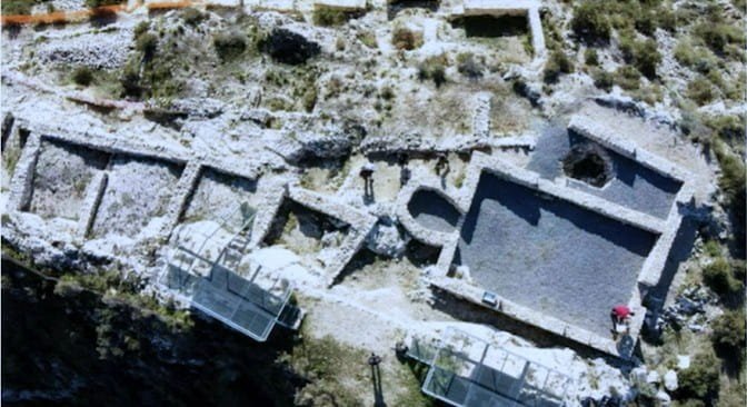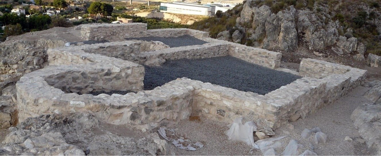 - VISTA DE LA IGLESIA DESDE EL NORESTE TRAS LA RESTAURACIÓN Y CONSOLIDACIÓN DE LOS RESTOS EXHUMADOS – Imagen obtenida de: https://origenesdeeuropa.eu/patrimonio/espana/yacimiento-arqueologico-de-el-monastil/ © FOT. ANTONIO M. POVEDA NAVARRO